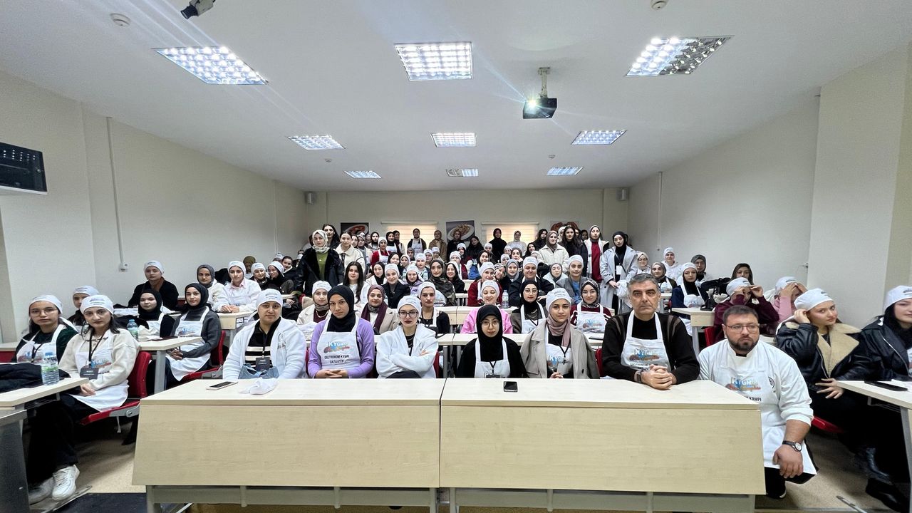 Etkinlik kapsamında Arş. Gör. Mustafa Kemal Kök, “Gaziantep Mutfak Kültürü” başlıklı sunumunda, şehrin köklü mutfak mirası, sofra adabı ve coğrafi işaretli ürünleri hakkında öğrencilere bilgi verdi.