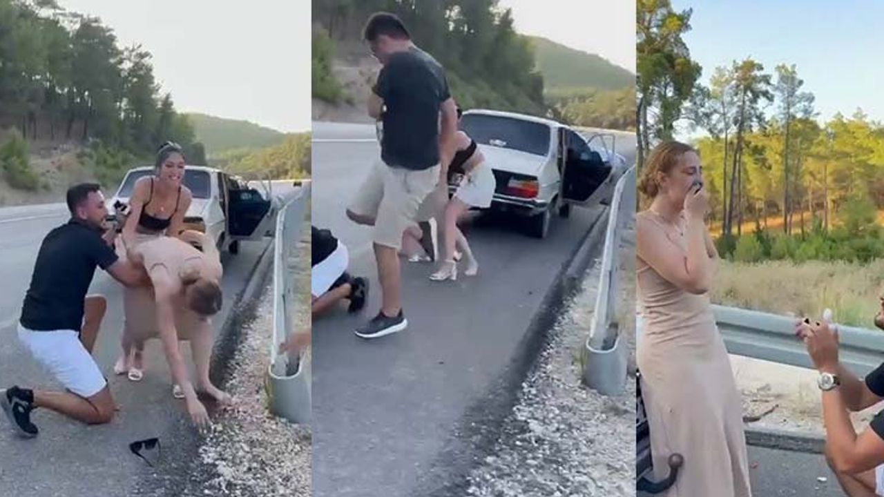 Genç kızın uzun süre gözyaşı döktüğü görüldü. Bir süre sonra dayak yediği yerden kalkan genç bir anda elinde yüzükle sevgilisinin karşısında diz çöktü.