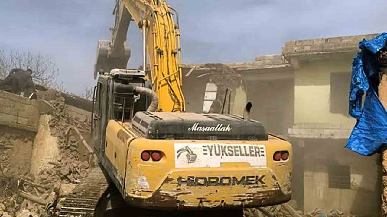 Gaziantep'in Araban ilçesinde, Kahramanmaraş merkezli depremlerde hasar gören binaların yıkımına devam ediliyor.