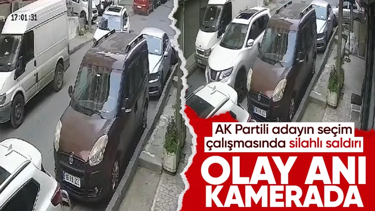 AK Parti Küçükçekmece Belediye Başkan Adayı Aziz Yeniay’ın seçim çalışması sırasında düzenlenen silahlı saldırıya ilişkin güvenlik kamerası görüntüsü ortaya çıktı. Görüntülere 2 şüphelinin camdan sarkarak ateş ettikleri anlar yansıdı.