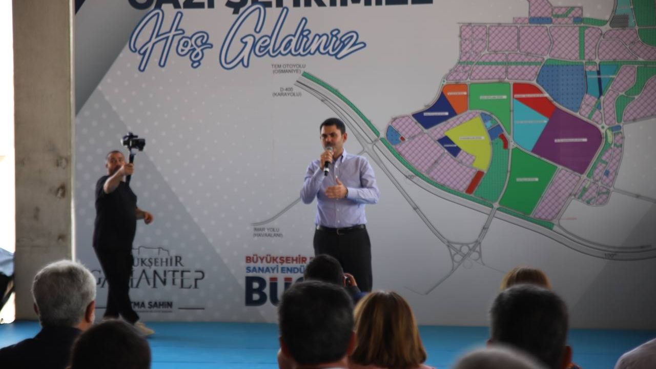 Bize, bu hazine arazisinin uygun bedellerle verilmesi talep edildi. Biz de burada 150 bin kardeşimizi istihdam edecekseniz bu araziyi sizlere uygun şartlarda tahsisini yaparız’ dedik ve Gaziantep Büyükşehir Belediyesine tahsisini yaptık” ifadelerini kullandı.