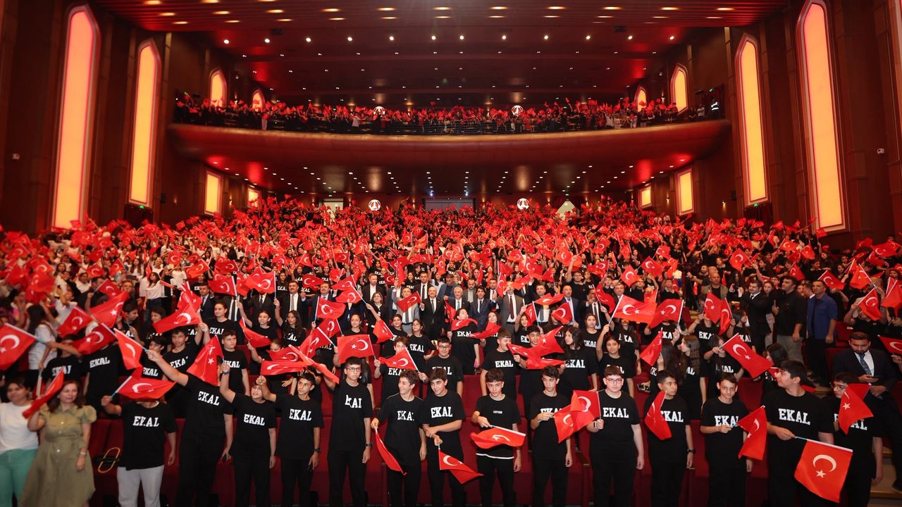 Konuşmalarının ardından Bakan Şimşek ve protokol üyeleri öğrencilerle fotoğraf çektirdi.
