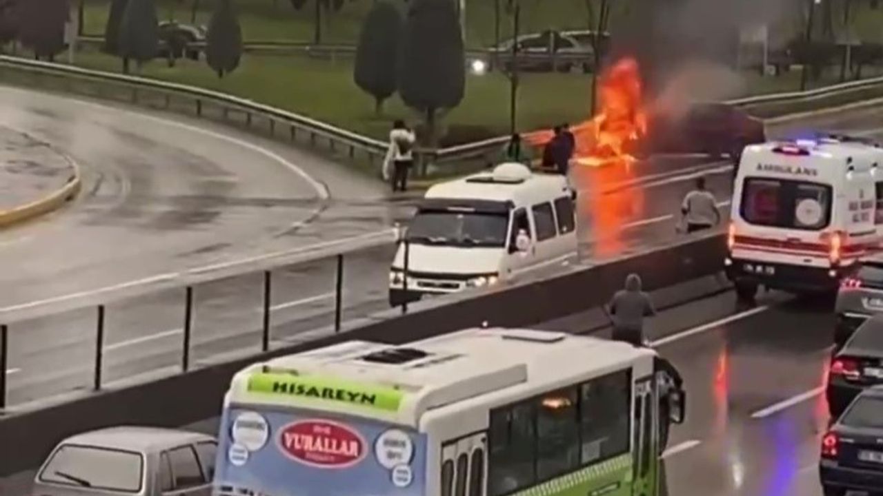 Kocaeli’nin Gölcük ilçesinde sürücünün hakimiyetini kaybettiği otomobil önce bariyere çarptı, ardından alev aldı. Alev topuna dönen aracı itfaiye ekipleri söndürdü.