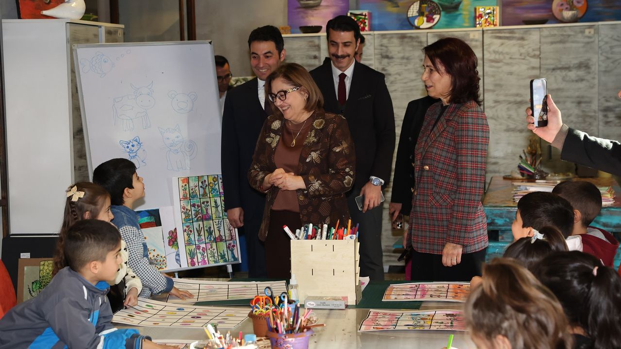 Atölyelerin devam ettiği Kahraman Emmioğlu Kültür ve Sanat Merkezi’nde kursiyerlerle bir araya gelen Başkan Fatma Şahin, piyano, keman ve resim eğitimi alan çocukların çalışmalarını yakından inceleyerek performanslarını izledi.