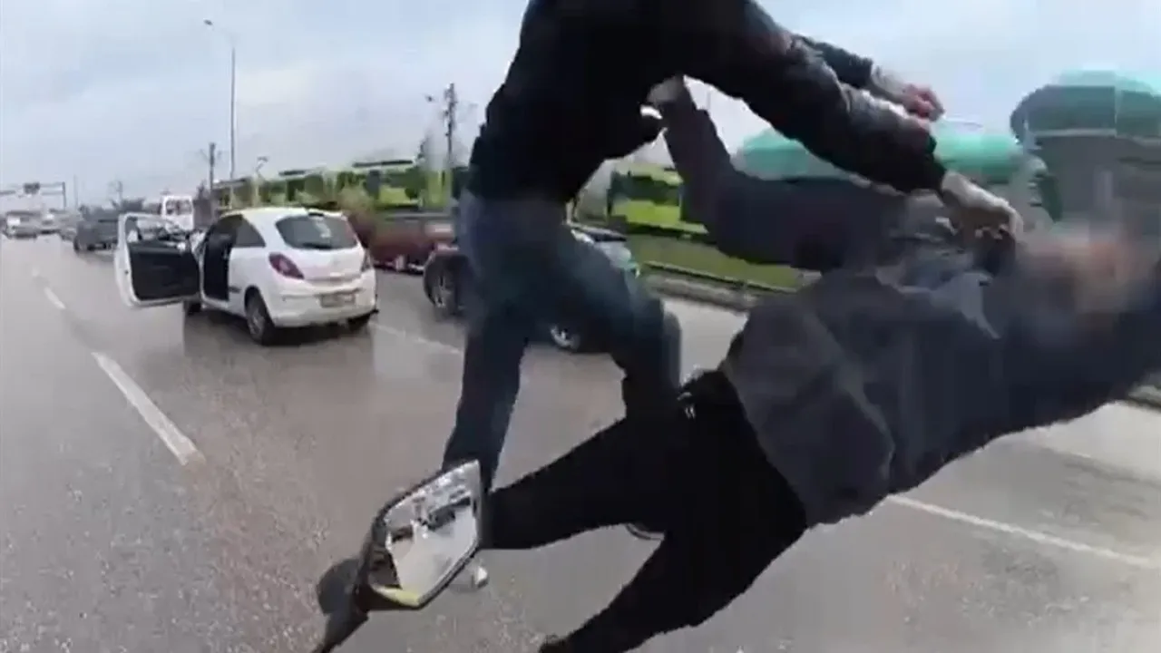 Tartışmanın büyümesi üzerine taraflar, araçlarını yol ortasına durdurarak birbirine tekme ve yumrukla saldırdı.