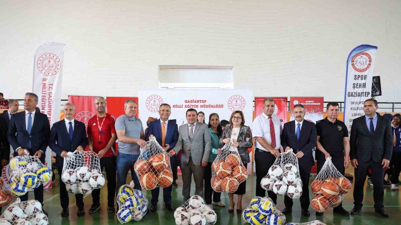 Yeni destekler kapsamında Gülşen Batar Anadolu Lisesi’nde düzenlenen törenle 7 bin 500 futbol topu, 7 bin 500 voleybol topu, 5 bin basketbol topu, bin hentbol topu ve 14 bin 500 adet masa tenisi malzemesi okullara dağıtıldı. Törene Gaziantep Büyükşehir Belediye Başkanı Fatma Şahin, Gaziantep Valisi Kemal Çeber ve Şahinbey Belediye Başkanı Mehmet Tahmazoğlu katıldı.