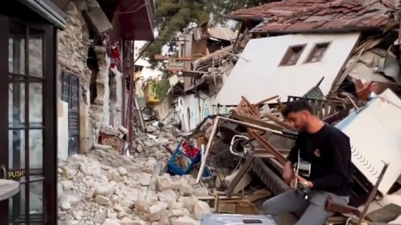 Hatay’da iki büyük depremin ardından yerle bir olan eski Antakya sokaklarında "Hatıran Yeter" şarkısını söyledi.