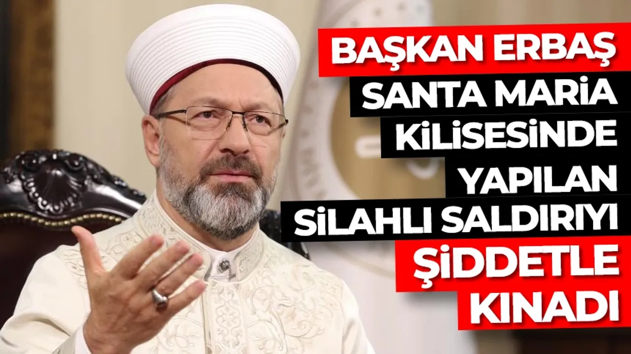 Diyanet İşleri Başkanı Ali Erbaş, 1 kişinin öldüğü kilise saldırı ile ilgili açıklamalarda bulundu. Başkan Erbaş, "Hangi dinin mabedi olursa olsun, her zaman dokunulmazdır bizim inancımıza göre" dedi.