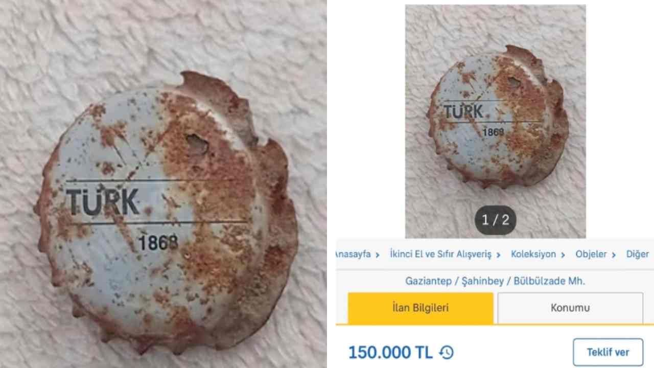 Gaziantep’te bir vatandaşın internet üzerinden satışa sunduğu gazoz kapağı, hem iddia edilen tarihi hem de istenen bedel nedeniyle gündem oldu. 1868 yılına ait olduğu öne sürülen gazoz kapağı için talep edilen 150 bin TL’lik fiyat, kısa sürede sosyal medyada geniş yankı uyandırdı.