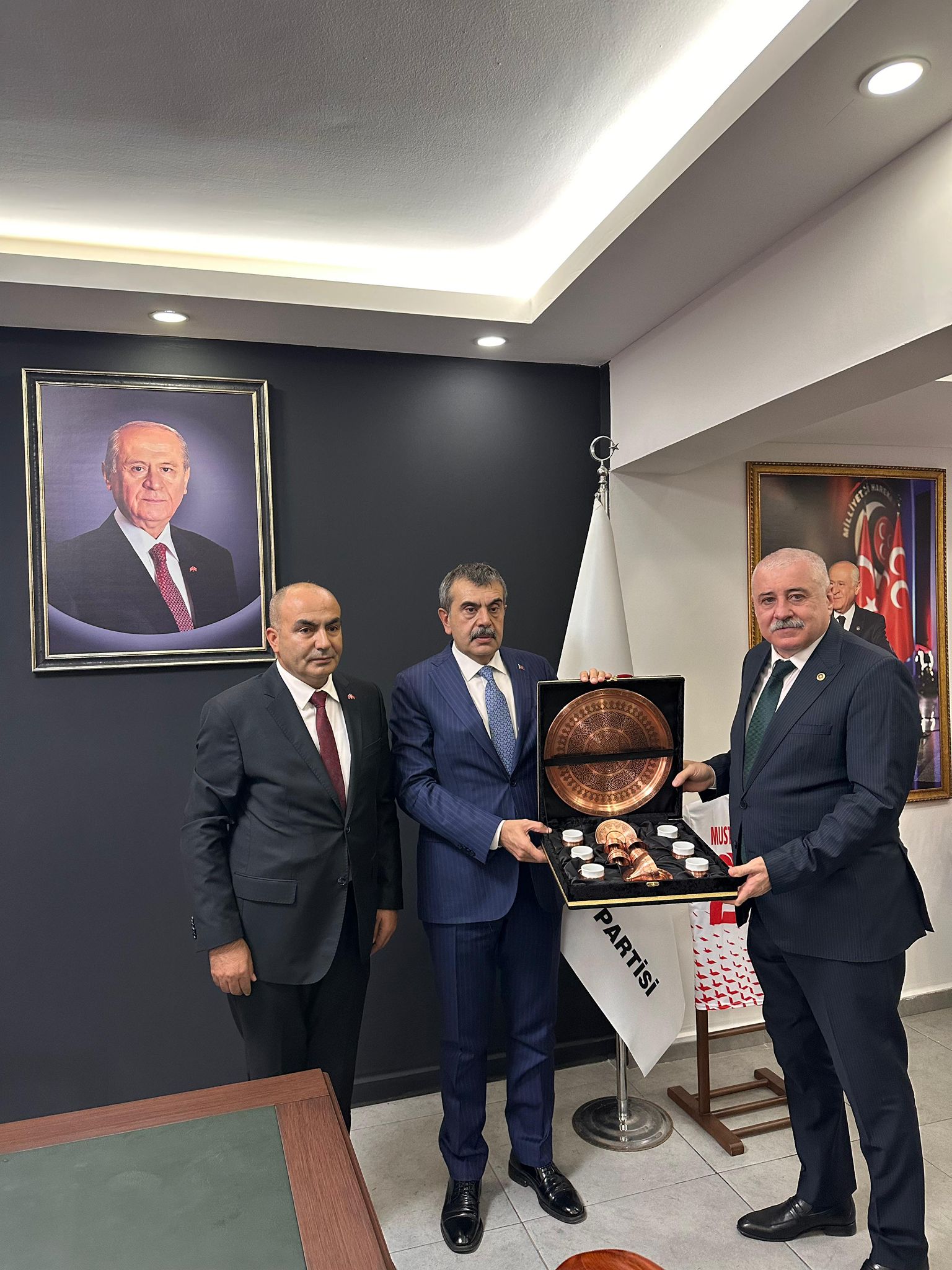 MHP Gaziantep İl Başkanı Mustafa Bozgeyik, ziyaretten duyduğu memnuniyeti dile getirerek Bakan Tekin’e Gaziantep yöresine özgü bakır işlemeli kahve takımı hediye etti.