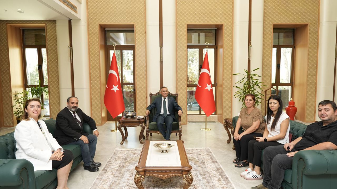 Ziyaretin sonunda ise renkli anlar yaşandı. Vali Çeber, gazeteci Aslı Aslan Emektar’a sürpriz bir doğum günü kutlaması yaparak misafirlerini sevindirdi.