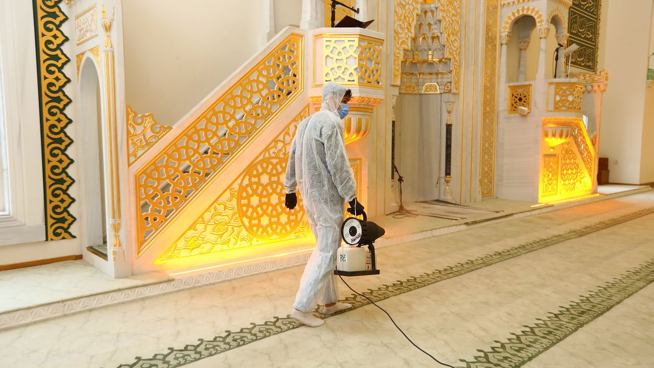 Vatandaşların ibadetlerini hijyenik, sağlıklı ve ferah bir ortamda gerçekleştirebilmesi amacıyla yürütülen çalışmalar kapsamında camiler detaylı şekilde temizleniyor, dezenfekte ediliyor ve gül suyu ile yıkanarak manevi atmosfere uygun bir ortam hazırlandı.