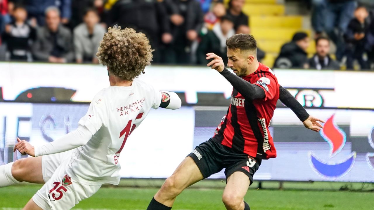 90. dakikada Emre Taşdemir’in sol kanattan ortasına ceza sahasının sağ tarafında Ogün Özçiçek’in vuruşunda savunma ve kaleci, meşin yuvarlağı çizgiden çıkardı.
