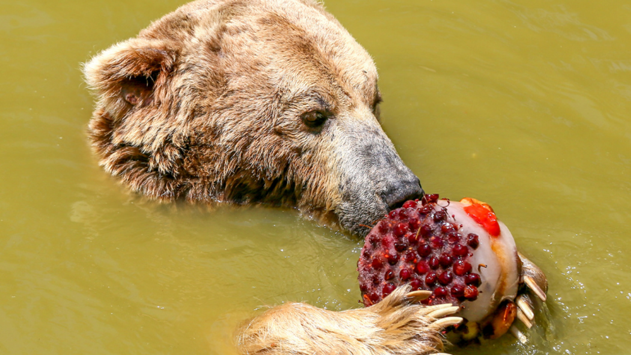Kaplan ve aslan gibi yırtıcı hayvanlara buzlu et kokteyli, ayılara ise elma, portakal, kivi, çilek, muz ve üzümden oluşan meyveli buz kokteylleri veriliyor.