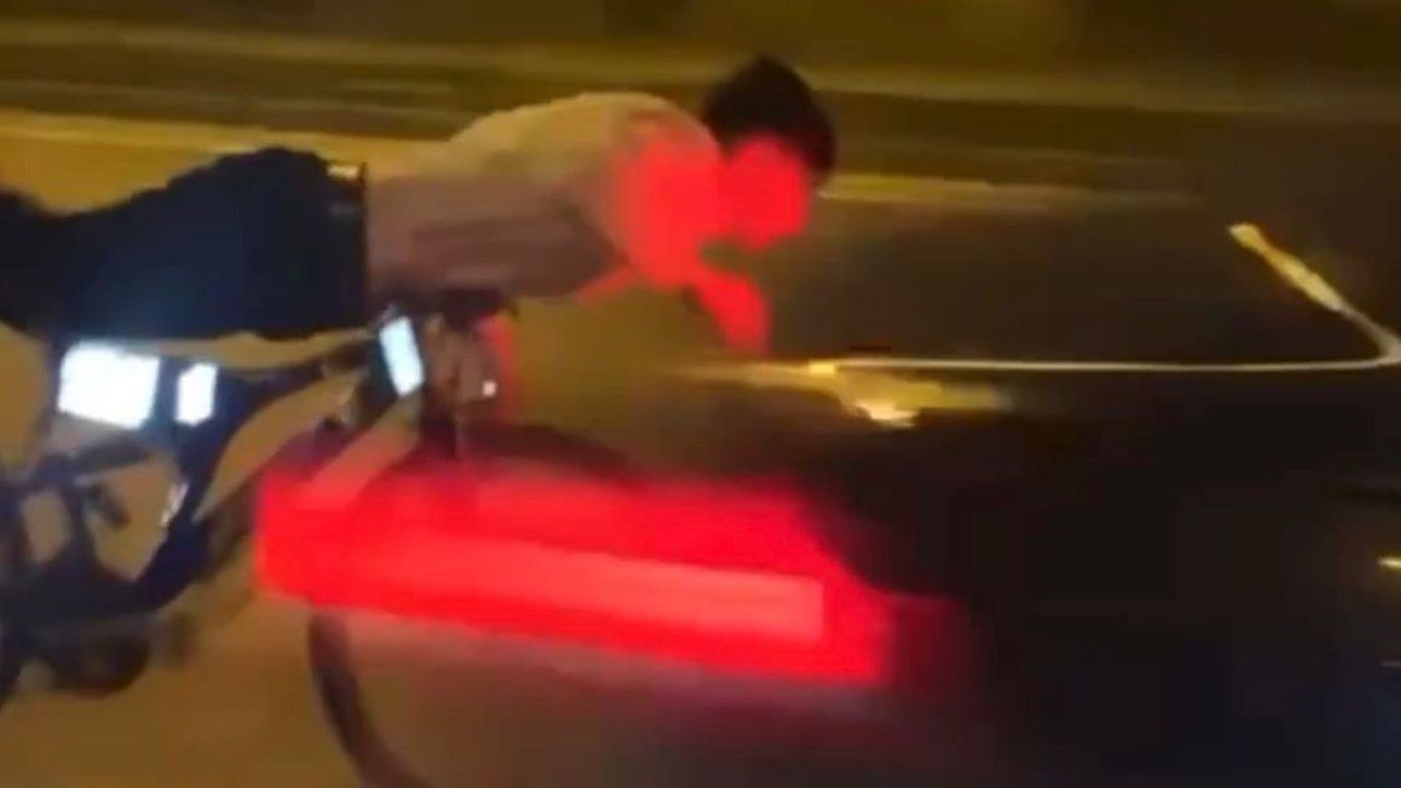 18 yaşındaki Barış Tanrıverdi'nin ölümüyle sonuçlanan feci kaza anları ise arkadaşlarının cep telefonu kameralarına saniye saniye yansıdı. Görüntülerde, Tanrıverdi'nin üzerine uzanarak sürmeye çalıştığı bisikletle sola manevra yapar yapmaz önündeki otomobile hızla çarpma anları yer aldı.