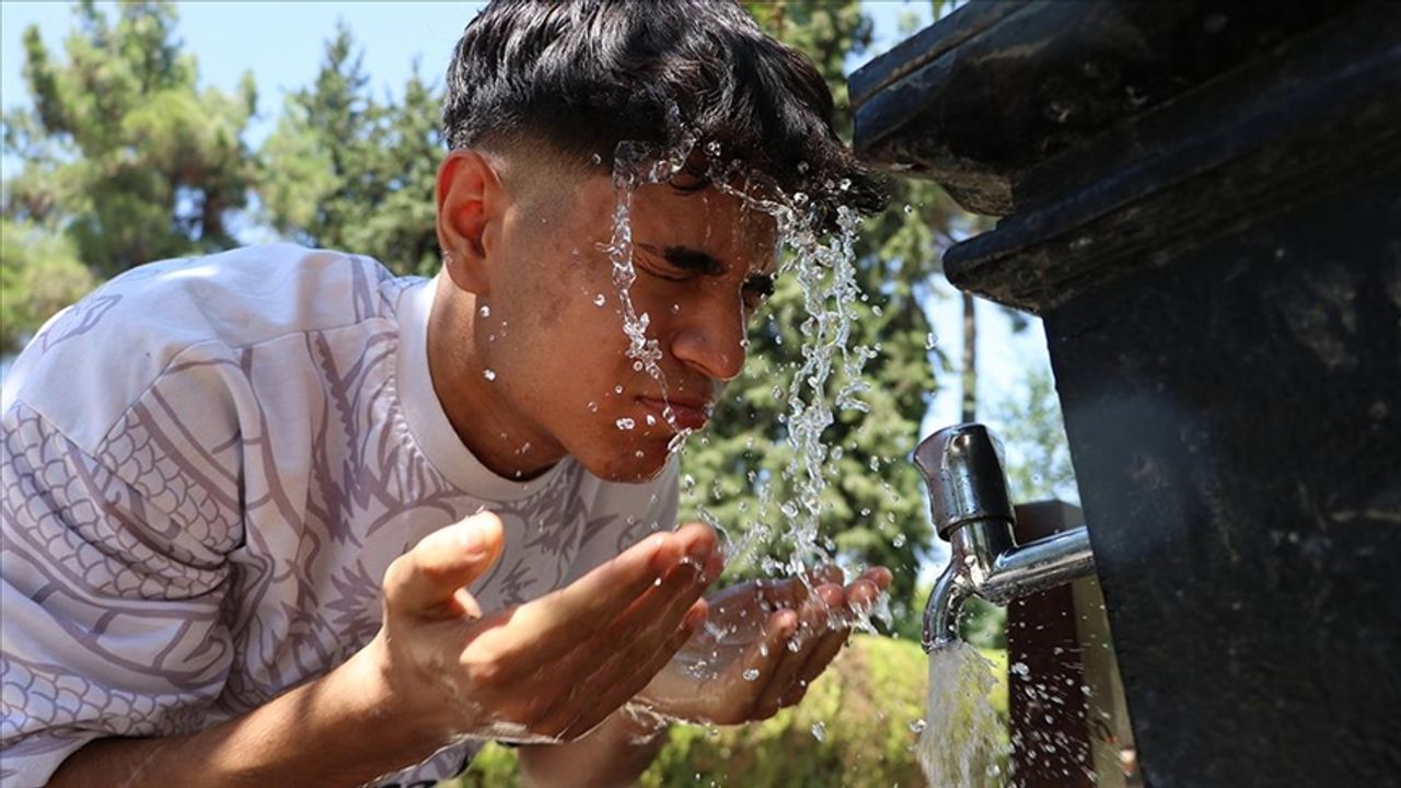 Sıcaktan korunmak isteyen bazı kent sakinleri, gölgelik alanlarda vakit geçirirken bazıları çeşmelerden yüzünü ve başını ıslatarak serinlemeye çalıştı.