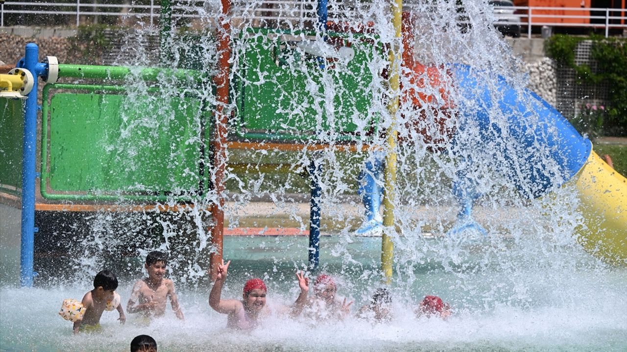Çocuklar ise havuzlarda serinlemeye çalıştı.