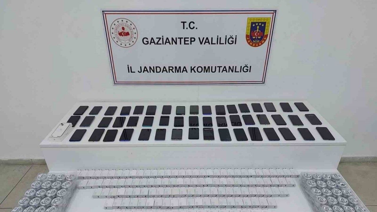 Gaziantep’te jandarma ekiplerinin operasyonu sonucu 1 milyon 300 bin TL değerinde gümrük kaçağı cep telefonu, şarj kablosu ve adaptörü ele geçirildi, 2 şüpheli gözaltına alındı.