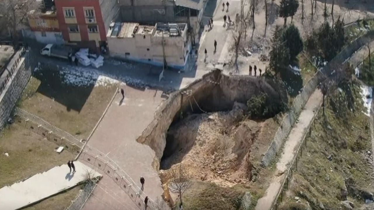 Kahramanmaraş merkezli yaşanan 2 büyük depremin ardından Gaziantep’te bir parkta 30 metre genişliğinde 8 metre derinliğinde dev obruk oluştu.