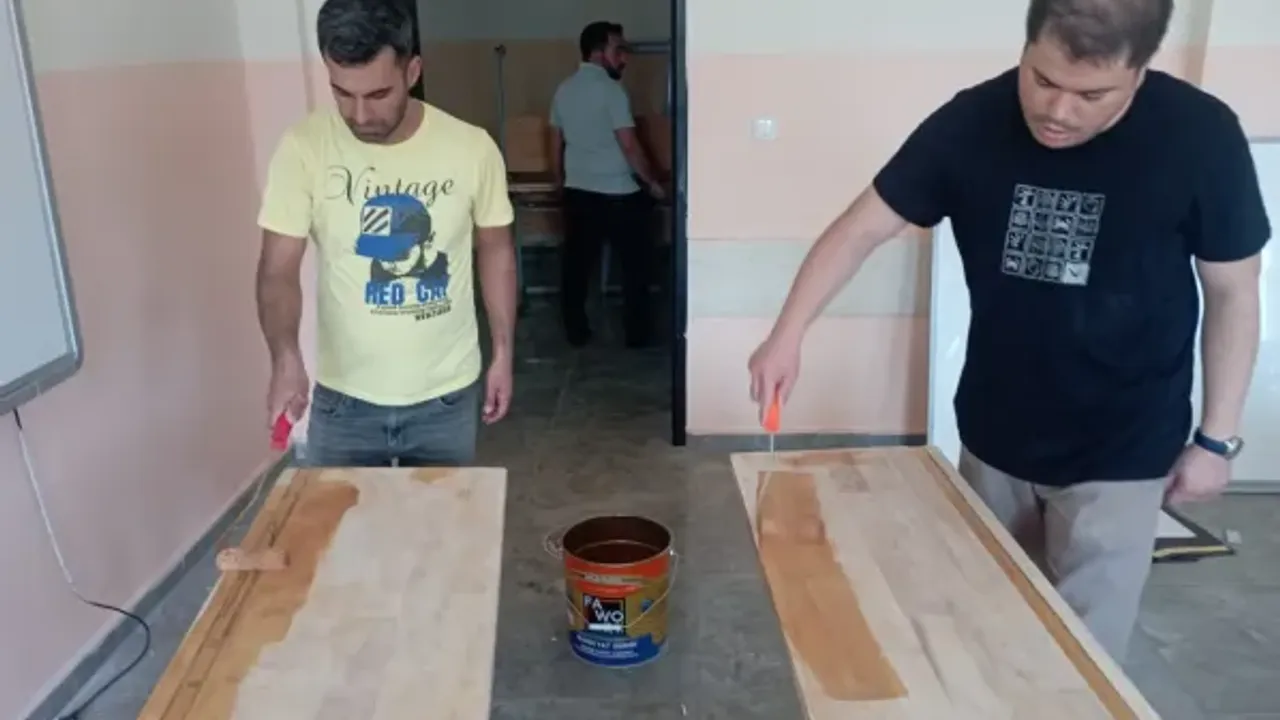 Okul Müdürü Halim Erol, yıpranan masa ve sıraları eğitim ve öğretim dönemine hazır hale getirmek istediklerini ifade ederek meslektaşlarına teşekkür etti.