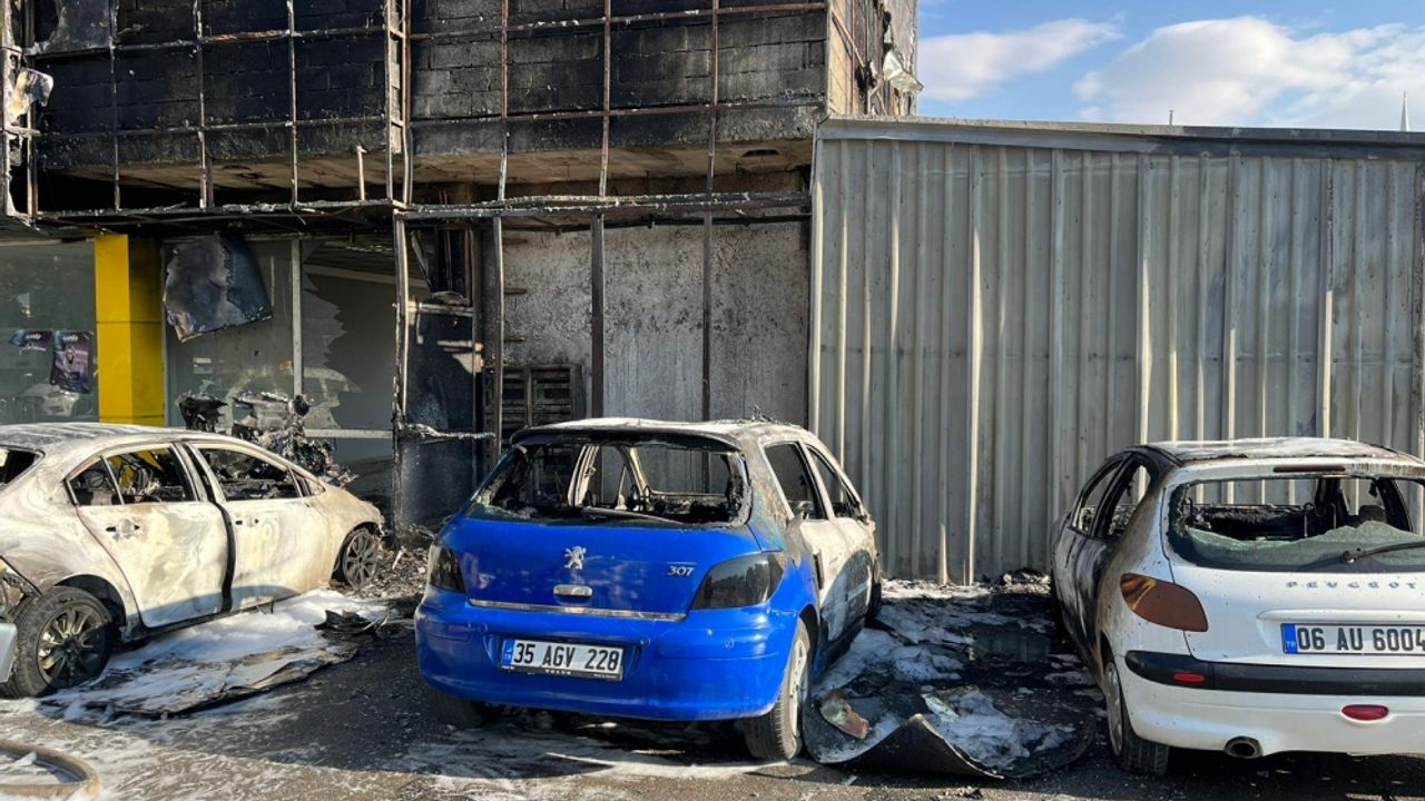 İş merkezinin çevresindeki park halindeki araçlara da sıçrayan yangında 1 hafif ticari araç ile 4 otomobil zarar gördü.