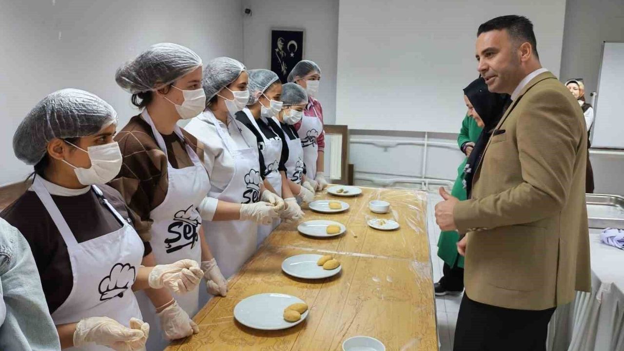 Aile ve Sosyal Hizmetler İl Müdürlüğü'nün bünyesinde barınma hizmeti alan 20 kız öğrencinin katıldığı etkinlik kapsamında öğrencilere yönelik düzenlenen içli köfte yapım atölyesinde şef Mithat Babacan, öğrencilere içli köfte yapımını öğretti.