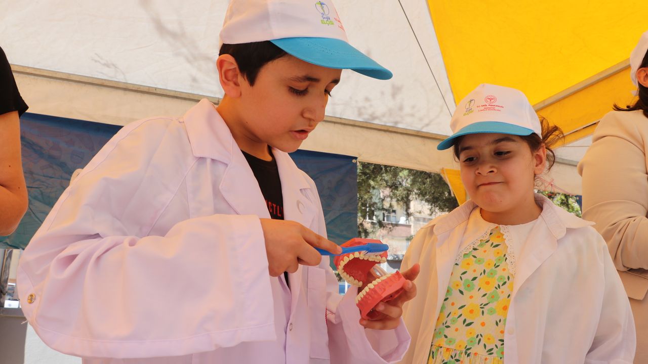 Çocuklara sağlıklı yaşam alışkanlıklarının kazandırılması amacıyla Hacı Fehime Güleç İlkokulu'nda düzenlenen etkinlikte, çeşitli stantlar kuruldu ve katılımcılara sunumlar yapıldı.