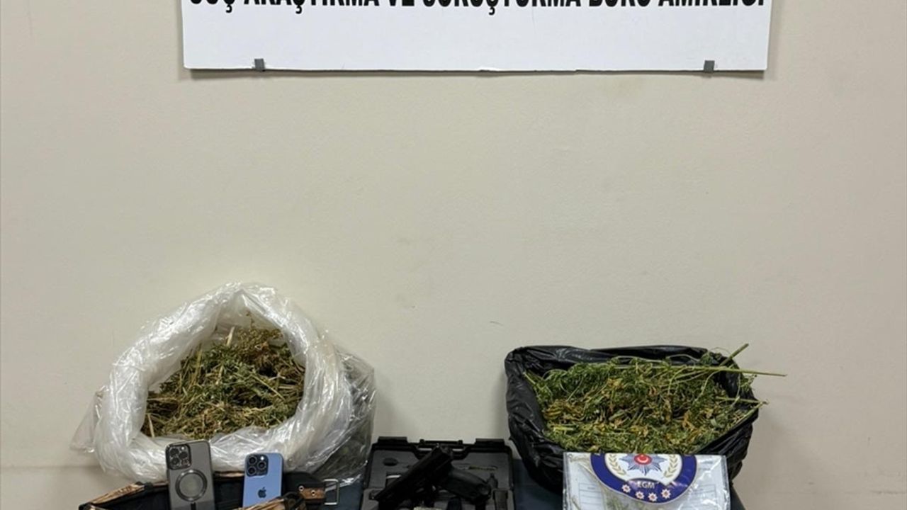 Ekipler, belirledikleri adreslerde yaptıkları aramada 2 kilo 235 gram esrar, 2 tüfek ve tabanca ele geçirdi.