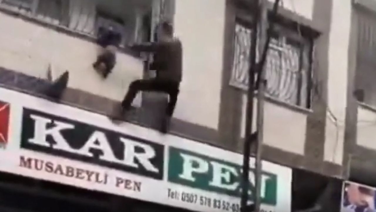Bu sırada elektrik direğine tırmanarak çocuğun yanına ulaşan esnaf Volkan Kılınç, düşmek üzere olan çocuğu tutarak kurtardı.