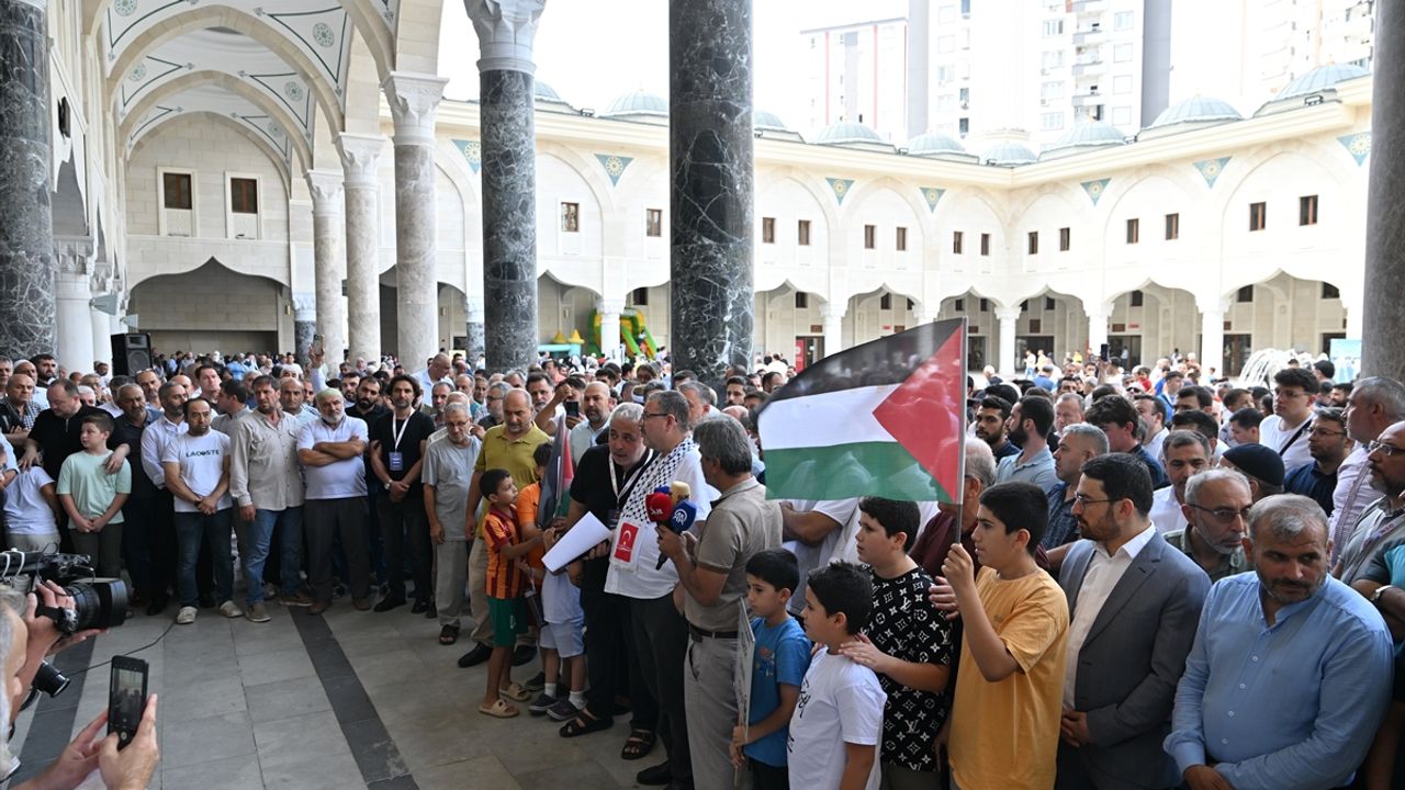Gaziantep Kudüs Platformu ve Gaziantep Gönüllü Kuruluşlar tarafından düzenlenen programda, vatandaşlar, Şahinbey Millet Camisi'nde kılınan cuma namazının ardından avluda bir araya geldi.