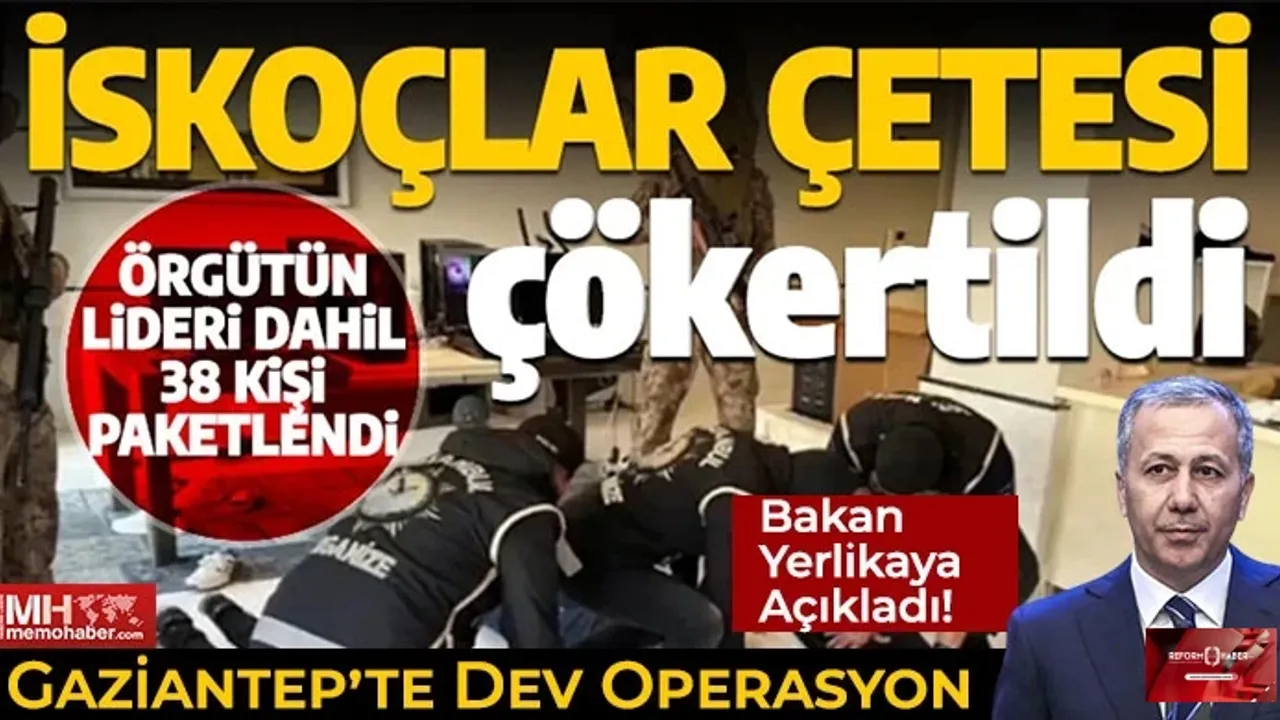 "İçişleri Bakanı Yerlikaya sosyal medya hesabından yaptığı açıklamada, İstanbul merkezli Tekirdağ ve Gaziantep’te eş zamanlı olarak düzenlenen "Kafes-17 Operasyonu” ile “İskoçlar Çetesi” olarak bilinen organize suç örgütü çökertildiğini belirterek şu bilgileri verdi: "Operasyonda örgütün elebaşı ile birlikte 38 şüpheli şahıs yakalandı.