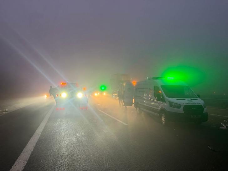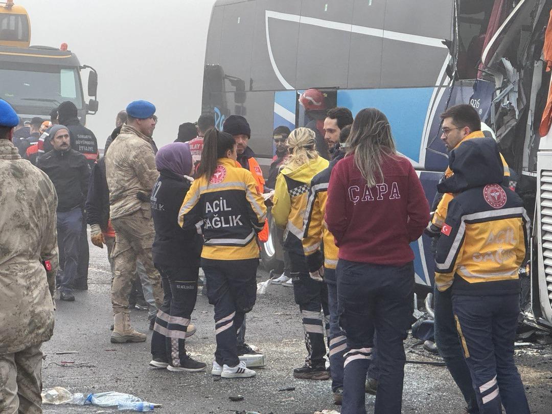 "Yaralılardan 7'sinin durumu ağır. Yedi yaralıdan biri ameliyata alındı. Tüm ekipler burada. Olay yeri inceleme ekipleri de burada. Olay yeri inceleme ekibi şu anda çalışıyor ama ilk küçük otomobilin Tır'a çarpması şeklinde kazanın başladığı tahmin ediliyor. Daha sonra da diğer araçların çarptığı şekilde. Vefat edenlerin bir kısmı araçtan inen yayalara arkadan gelen diğer bir aracın çarpması ile gerçekleştiği belirtiliyor. Tabi bunlar ilk tespitler."