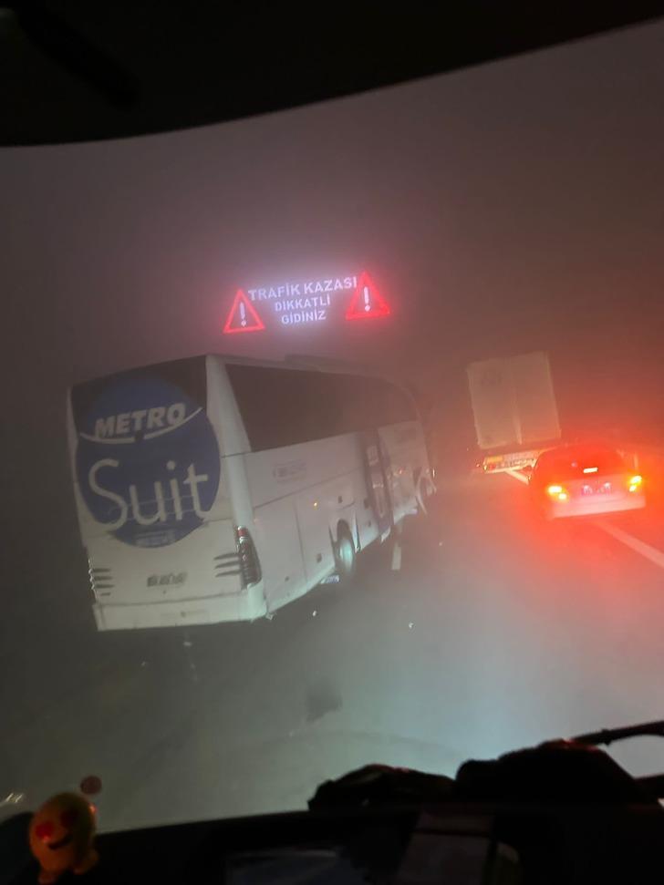 Alınan bilgiye göre, otoyolun İstanbul yönü Dağdibi mevkisinde aralarında 3 otobüs ve bir tırın da bulunduğu 7 araç henüz belirlenemeyen nedenle zincirleme kaza yaptı.