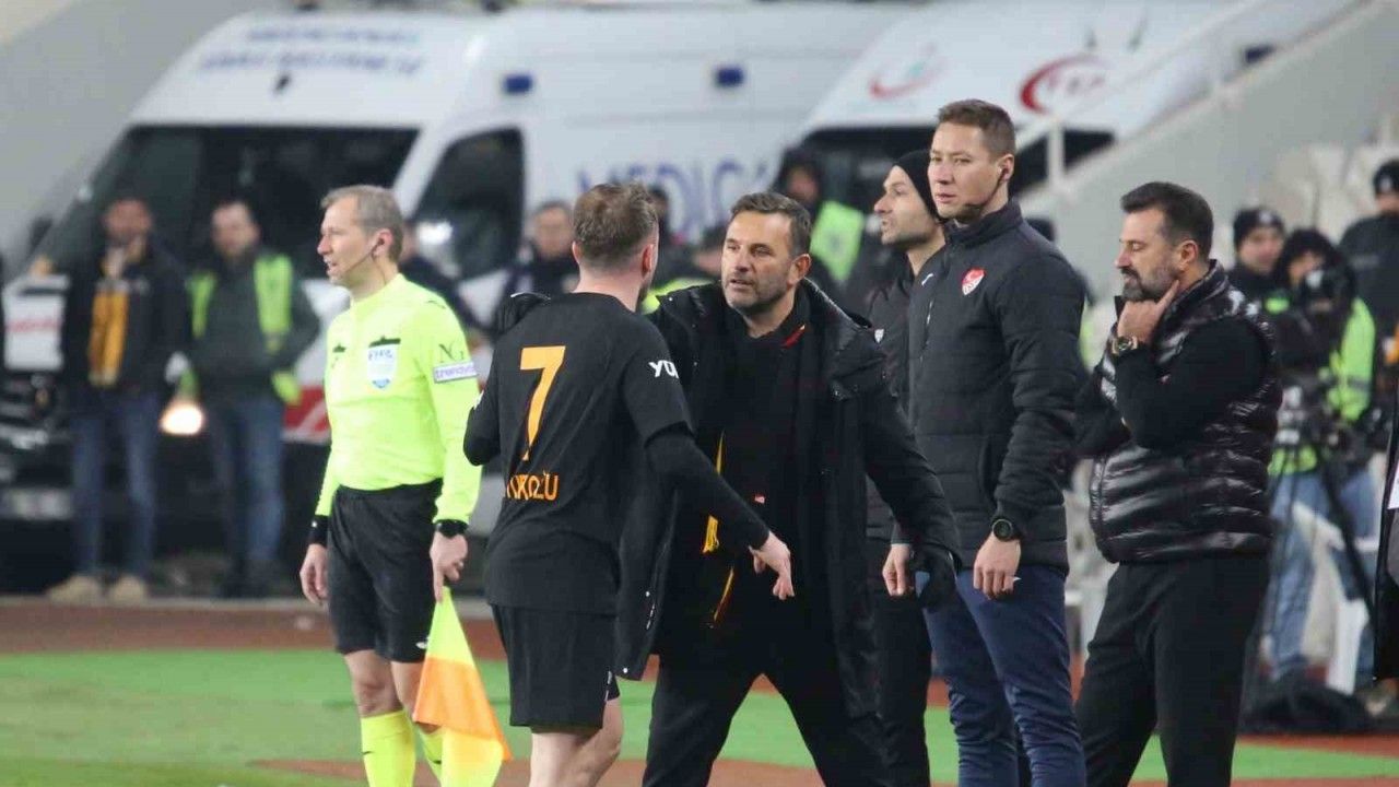 25 yaşındaki futbolcu saha kenarına gelirken 4. hakeme tepki gösterirken, Teknik Direktör Okan Buruk oyuncusunu sakinleştirdi.