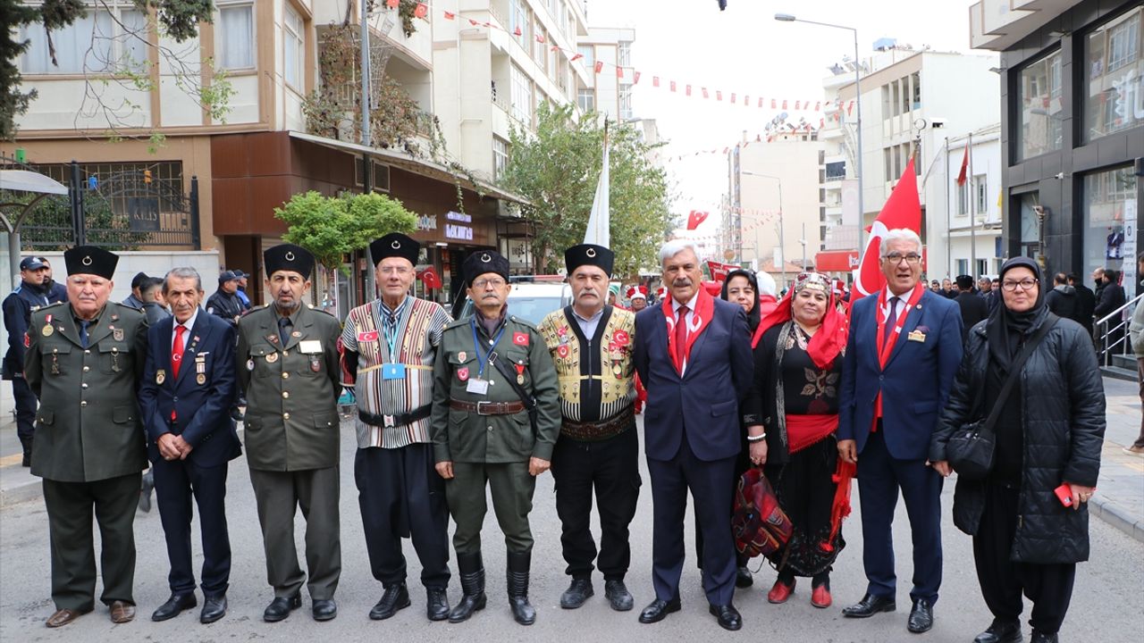 Cumhuriyet Caddesi'nde toplanan protokol üyeleri ve vatandaşlar, ellerindeki Türk bayrakları ile Şehitler Parkı'na kadar yürüdü.
