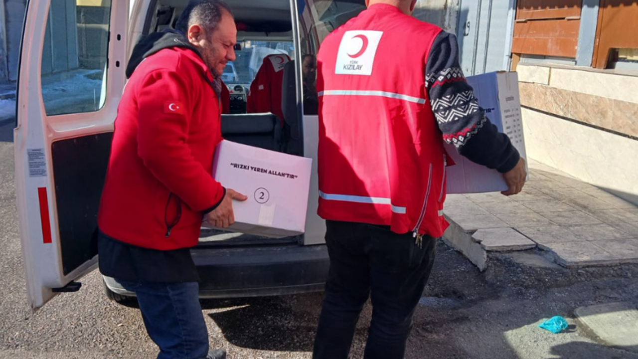 İlçedeki yardım faaliyetlerini sürdüren Türk Kızılay gönüllüleri, belirlenen haneleri ziyaret ederek gıda ve ihtiyaç malzemelerini teslim etti.
