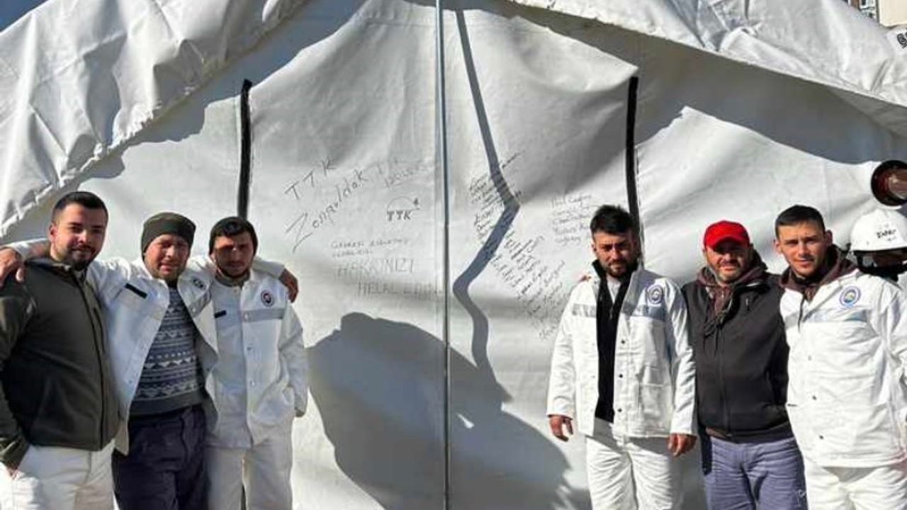 Madenciler çadıra isimleri yazarak, ‘TTK Zonguldak İşçileri, çevreyi kirletmiş olabiliriz, hakkınızı helal edin’ şeklinde not yazdı.