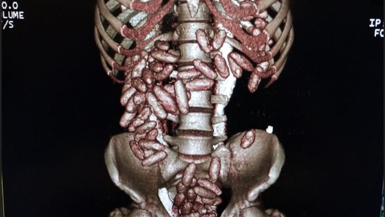 Sağlık kuruluşunda yapılan muayene ortaya çıkarılan kapsüllerin içerisindeki maddenin kokain olduğu belirlenirken, kuryenin 820 gram kokain yuttuğu belirlendi.