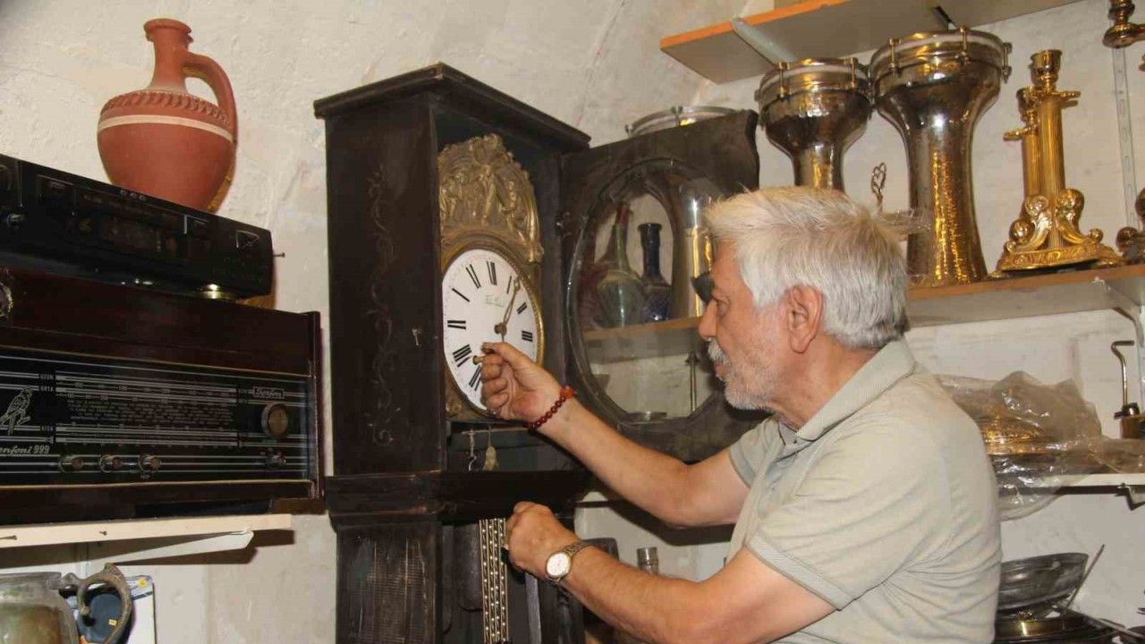 Tarihi eser, antika eşya ve objelerden oluşan yüzlerce parçayı gelecek nesillere aktarmak amacıyla 20 yıldır müze gibi iş yerinin odasında sergileyen Dertli, topladığı antikalardan bozuk ve kırık olanlarında bakımını yapıyor.