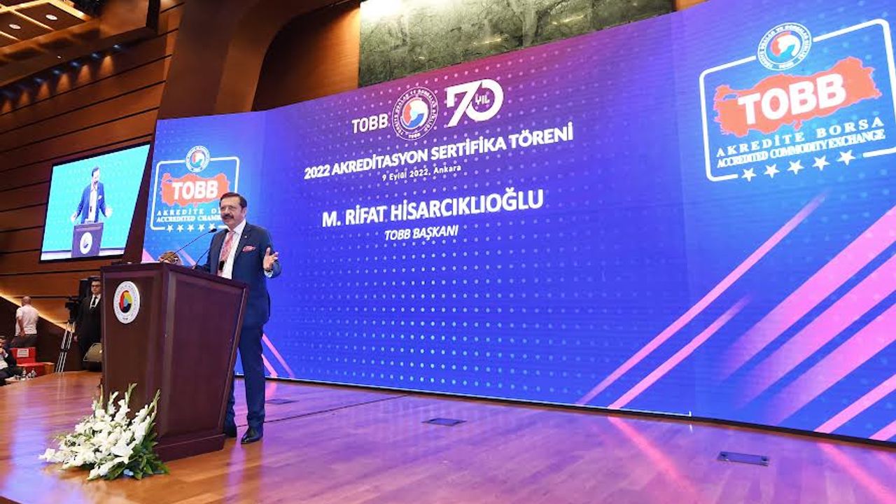 Akreditasyon sistemi denetiminden geçen oda borsalar sertifikalarını Türkiye Odalar ve Borsalar Birliği (TOBB) Konferans Salonu’nda gerçekleştirilecek törenle, TOBB Başkanı M. Rifat Hisarcıklıoğlu’nun elinden aldılar.