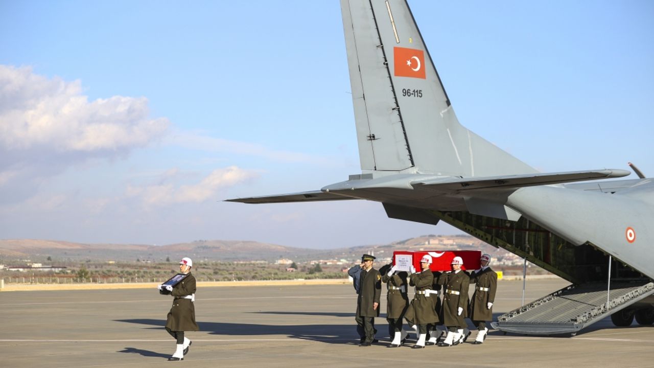 Şırnak'tan askeri uçakla Gaziantep Havalimanı'na getirilen İyem'in Türk bayrağına sarılı tabutu, silah arkadaşlarının omuzunda cenaze aracına konuldu.