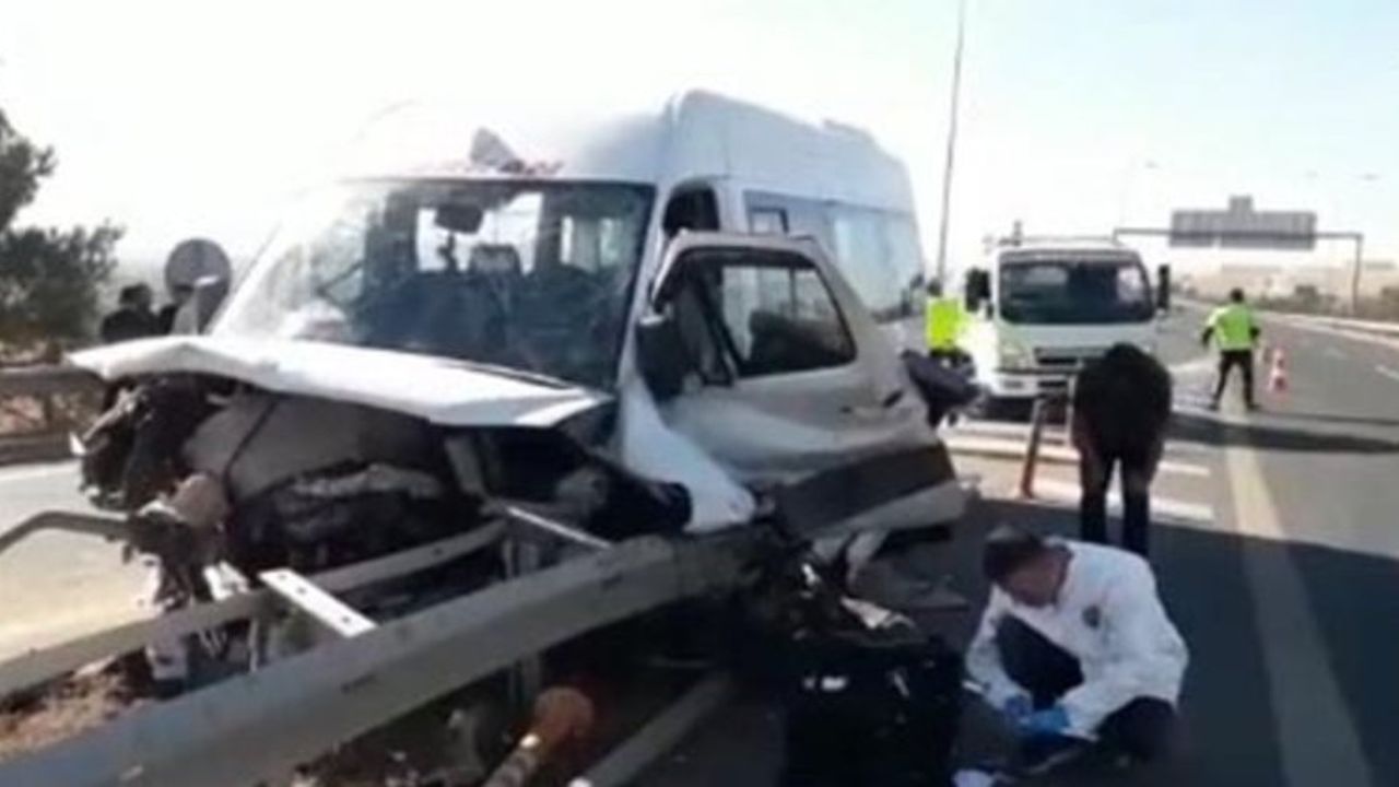 Organize Sanayi Bölgesinde meydana gelen kazada bir tekstil fabrikasının işçilerini taşıyan Mehmet Uzun yönetimindeki servis minibüsü, sürücüsünün kontrolden çıkarak refüjdeki bariyerlere çarptı.