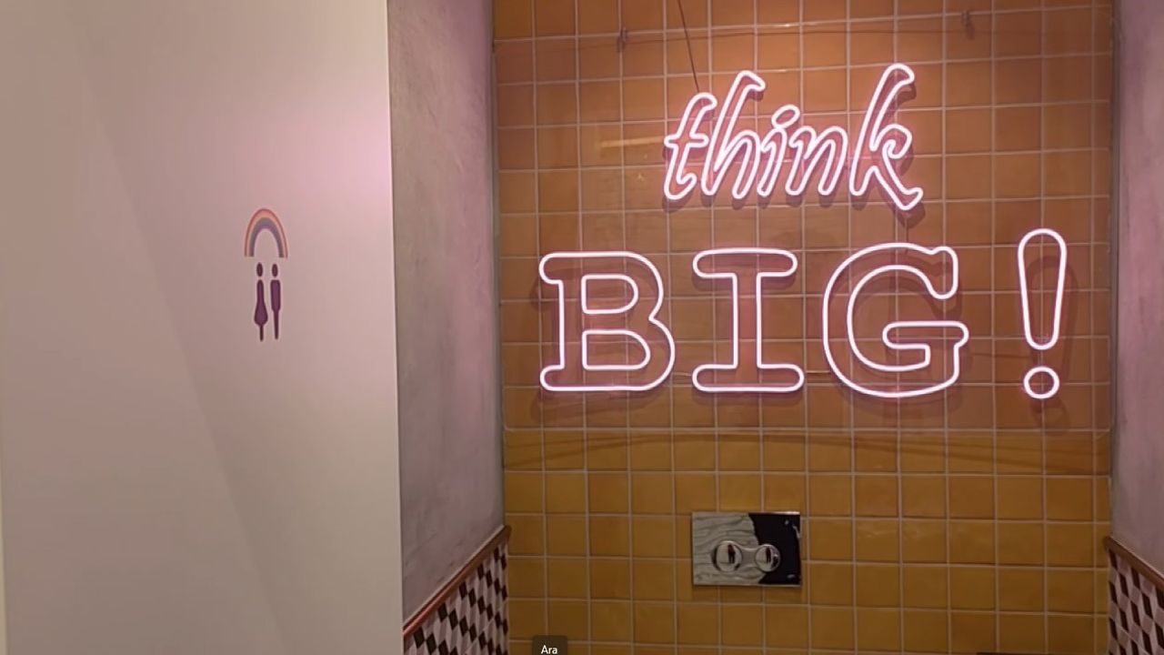 Öte yandan tuvaletin içinde ise İngilizce olarak "büyük düşün" yazdığı görüldü.