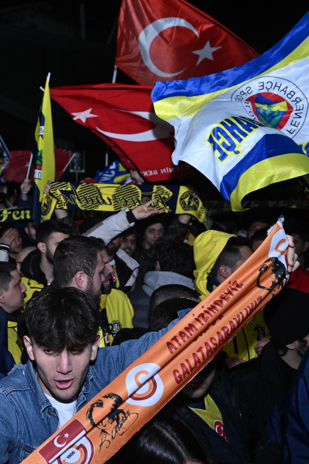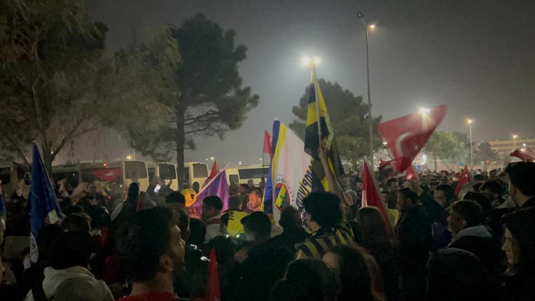 Sabiha Gökçen Havalimanı Genel Havacılık Terminali’ne iniş yapacak olan Fenerbahçe kafilesini taşıyan uçağı beklemek için çok sayıda Fenerbahçeli ve Galatasaraylı taraftar, havalimanına akın etti.