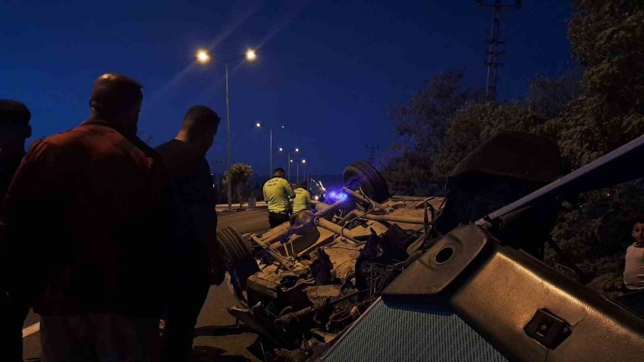 Kilis’te yol kenarındaki taşa çarpan Tofaş aracın hurdaya döndüğü kazada 2 kişi yaralandı.