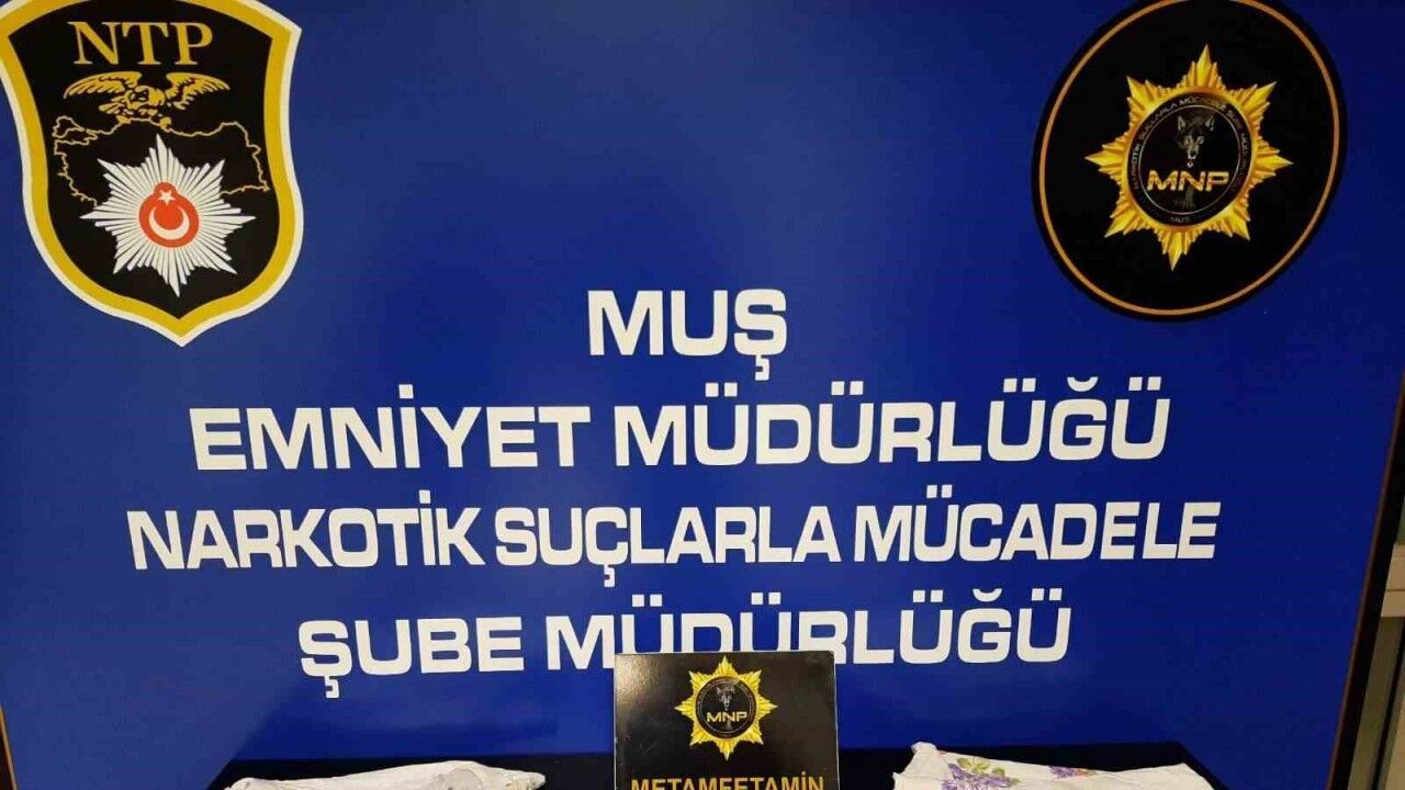 Muş’ta polis ekipleri durdurdukları yolcu otobüsünde, bacaklarına ve beline sarılı halde 1 kilo 69 gram sentetik uyuşturucuyla yakaladıkları şahsı gözaltına aldı.