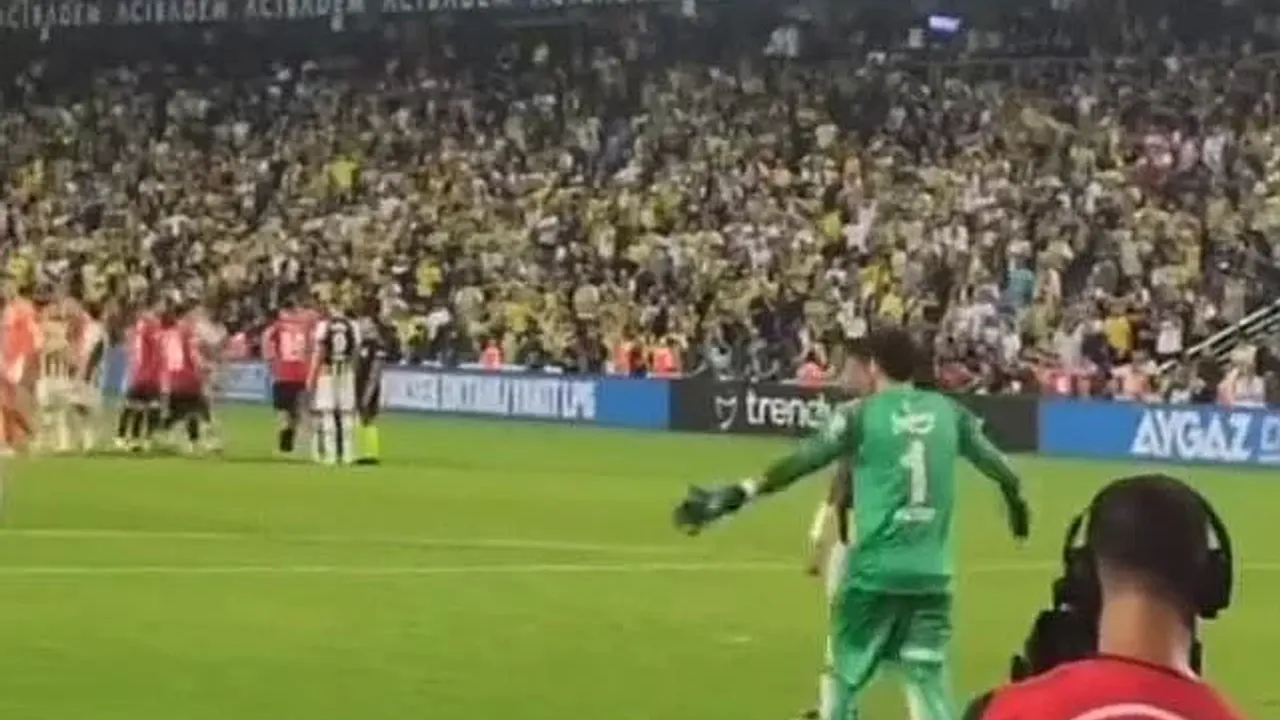 Tepkiler sırasında bir taraftarın sahaya su şişesi attığı ve o su şisesinin Altay Bayındır'ın kafasına isabet ettiği ortaya çıktı.
