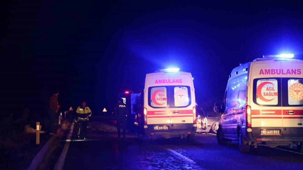 Nevşehir Kayseri karayolunda ters şeritten ilerleyen ve alkollü olduğu iddia edilen sürücü karşı şeritten gelen otomobil ile kafa kafaya çarpıştı. Kazada ilk belirlemelere göre 4’ü ağır 8 kişi yaralandı.